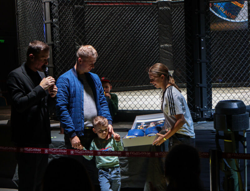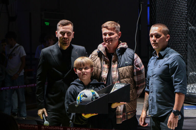 Окрім поєдинків, глядачів чекала ще одна особлива частина – благодійний аукціон. Серед лотів були унікальні речі: прапор спецпідрозділу «Кракен» з підписами бійців, футбольний м’яч з автографом Андрія Шевченка, боксерські рукавиці з підписом Олександра Усика та Данила Донченко.