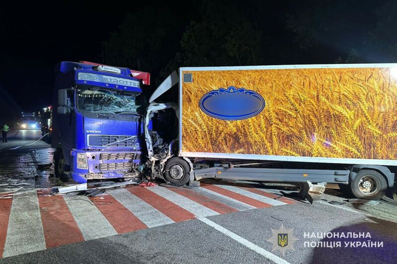 У селі Довжанка Тернопільського району сталася аварія за участю двох вантажівок. Водій сідлового тягача марки Volvo допустив зіткнення із вантажним автомобілем Mercedes-Benz. Внаслідок ДТП обоє водіїв отримали тілесні ушкодження. Транспортні засоби поміщені на арештмайданчик. Слідчі з’ясовують деталі ДТП.