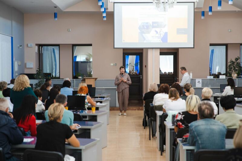 Директор центру Оксана Шандрук ознайомила вчителів з роботою навчально-наукового центру соціально-психологічної підтримки та резильєнтності та зазначила, що центр надає широкий спектр послуг, зокрема: консультування з індивідуальних питань, групові заняття та тренінги, психологічну підтримку в кризових ситуаціях.