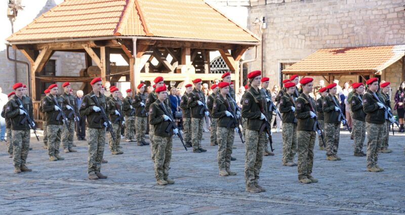 Сьогодні у Збаразькому замку сотня курсантів Тернопільського професійного коледжу з посиленою військовою та фізичною підготовкою склала Клятву на вірність Україні та українському народові.