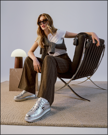 - Стальные тона – серебро, сталь и платина. Эти цвета будут использоваться не только в одежде, но и в обуви и аксессуарах Coccinelle. Они придают модному образу современности и стильности.