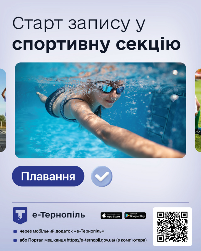 У Тернополі стартував електронний запис дітей до спортивних секцій комунальних дитячо-юнацьких спортивних шкіл. Першою відкрила набір 27 серпня «Комплексна дитячо-юнацька спортивна школа №1» – на групи з плавання.