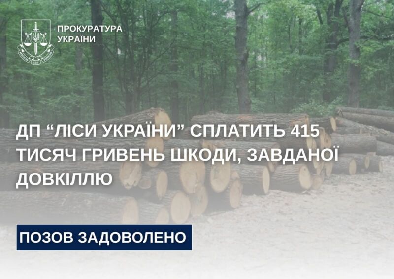 Господарським судом Тернопільської області задоволено позовну заяву керівника Бучацької окружної прокуратури, поданої в інтересах держави в особі Державної екологічної інспекції у Тернопільській області, Монастириської міської ради до Державного спеціалізованого господарського підприємства «Ліси України». Вимога – стягнути понад 415 тис. грн шкоди, завданої навколишньому природному середовищу, внаслідок незаконної порубки дерев.