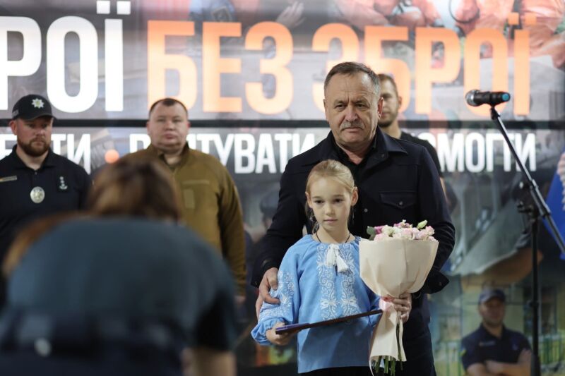 Посмертно відзнакою Президента України «За оборону України» нагороджено рятувальника Сергія Гоцуляка. Нагороду отримала його донька Анастасія.