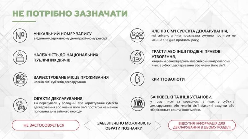 У трьох типах декларацій за 2019 рік, це – щорічна, після звільнення, кандидата на посаду – більше не потрібно зазначати: