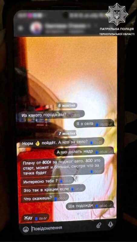 “До інспекторки служби освітньої безпеки звернулася учениця шостого класу однієї з тернопільських шкіл. У Telegram-каналі дівчині запропонували “заробіток” — підпалювати транспортні засоби”, – розповіли у патрульній поліції Тернопільської області.