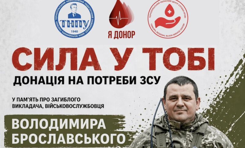 У Тернополі 29 квітня відбудеться благодійна виїзна донація крові, присвячена пам’яті військовослужбовця та викладача ТНПУ Володимира Брославського.