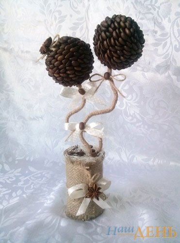 – Кавові топіарії – це також моя давня задумка. Вони роблять особливою атмосферу на кухні, наповнюючи її ароматом кави, додаючи неповторності у дизайні інтер’єру. Намагаюсь, щоб деревця були не схожими між собою. Навіть зерна кави викладаю по-різному. Не можу з точністю сказати на рахунок кількості зерняток, оскільки топіарії різних розмірів і форм. Та й кавові зернятка бувають викладені то у два шари, то в один шар – ребром… Мабуть, не менше, ніж двісті грамів зернят потрібно для середнього кавового дерева.