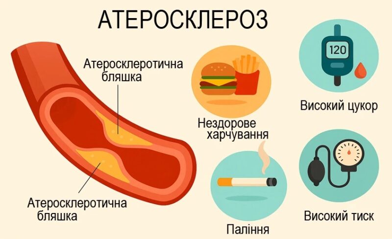 Атеросклероз – це хронічне ураження судин, коли на їхніх стінках накопичуються жири, передусім ЛПНЩ (ліпопротеїди низької щільності – “поганий” холестерин).