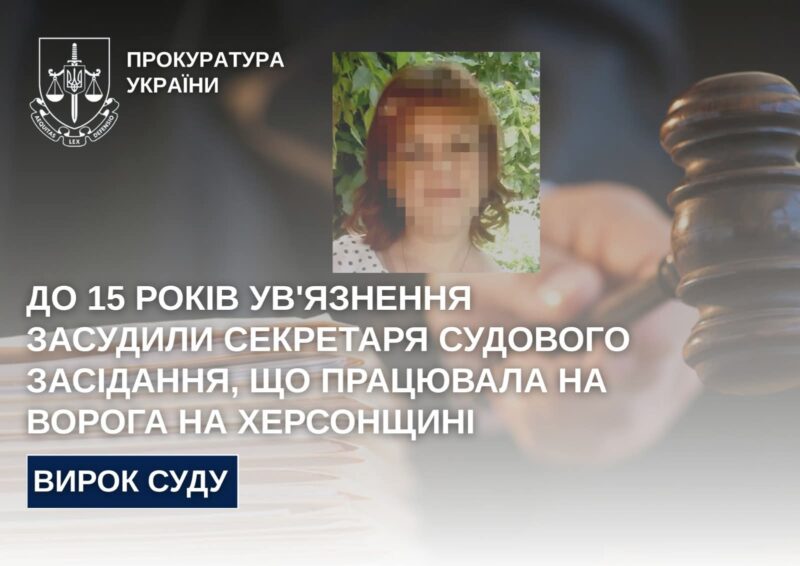 У Тернополі до 15 років ув’язнення заочно засудили секретаря судового засідання, яка працювала на окупантів у Херсоні.