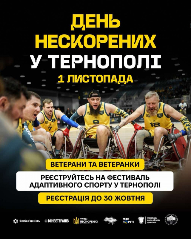 1 листопада у Тернополі пройде спортивний захід «День Нескорених». Подія дозволить об’єднати ветеранів та ветеранок навколо спорту й відновлення, а також створить простір для спілкування, зародження нових проєктів і стане джерелом підтримки для тих, хто вже творить зміни.