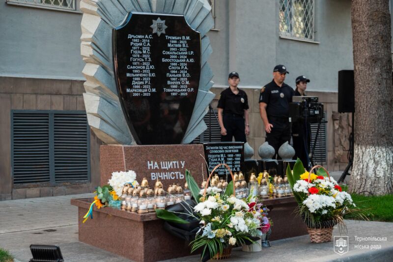 У Тернополі біля Головного управління Національної поліції відкрили пам’ятний знак правоохоронцям, які загинули у російсько-українській війні та під час виконання службових обов’язків. Участь у заході взяли рідні та близькі поліцейських, представники влади, духовенство та громадськість міста.