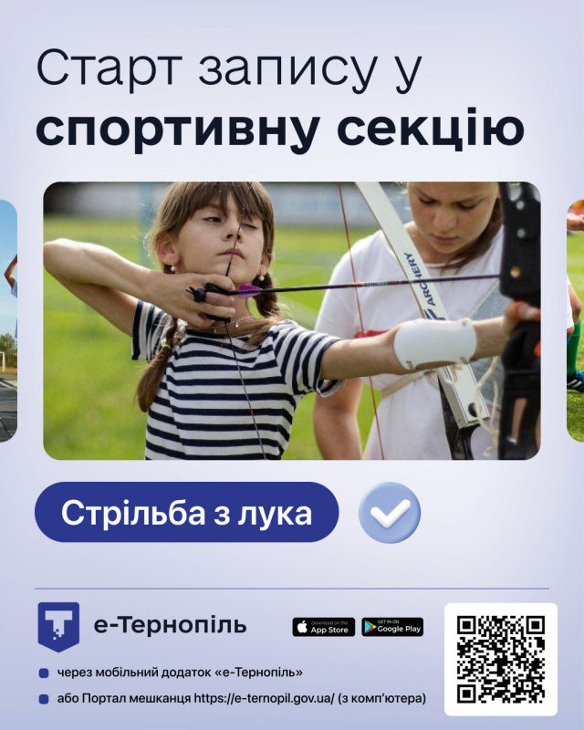 Запис до секції здійснюється в електронному форматі – через мобільний додаток «е-Тернопіль» або на «Порталі мешканця». Це зручно і дозволяє батькам швидко та без черг оформити заявку.