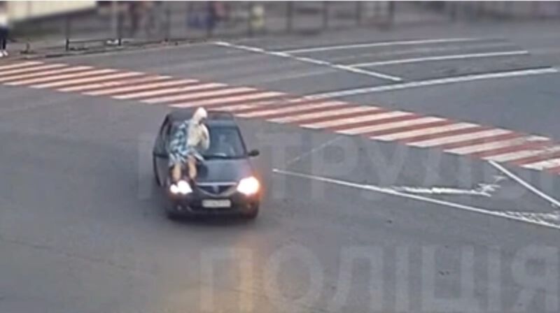 Автомобіль Dacia з людиною на капоті їздив вулицями Тернополя. Так катав свого друга 22-річний молодик.