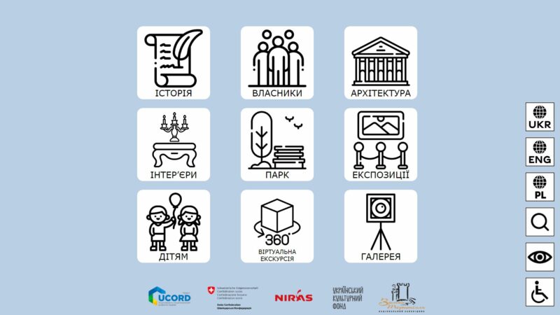 Особлива увага приділяється створенню безбар’єрного простору для людей з порушеннями слуху, зору чи опорно-рухового апарату. Кіоск оснащується індукційною системою для користувачів слухових апаратів, а також функціями зміни кольорової гами, електронної лупи та зручної навігації для осіб із порушенням зору. Створені аудіо описи з озвученням всієї текстової інформації створюють додаткові можливості для пізнання пам’ятки. Завдяки продуманому розташуванню на першому поверсі палацу, відвідувачі на кріслах колісних зможуть ознайомитися з матеріалами про інтер’єри та експозиції другого поверху палацу у віртуальному форматі.